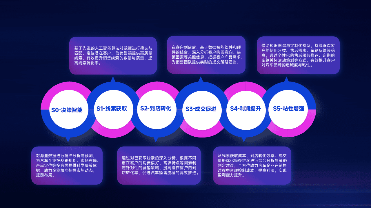 通过拓宽潜在客户来源、、优化线索分配并提高到店转化率,,,以增强销售效率。。同时,,利用线索数据不断优化分析模型,,,,有效提升转化率,,,,扩大营销影响力。。。
